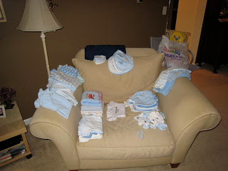 We got many many fun things for little man... a carseat, bedding, thermometer, sleep positioners, slings, baby bjorn, books, grocery seat covers and tons of cute clothing! This kid will be sharply dressed for the first year of his life at least! More than anything though, I have the knowledge that I have some of the best friends a girl can ask for! Thanks everyone!